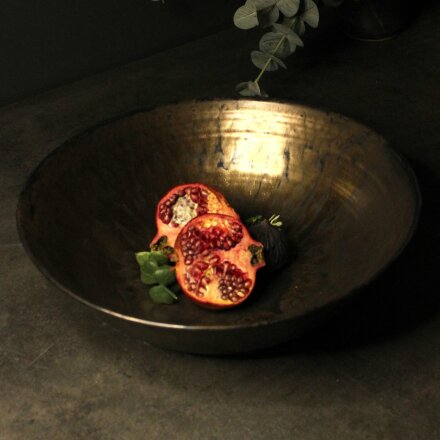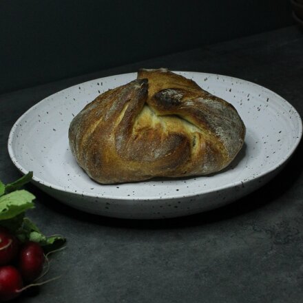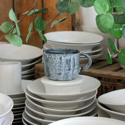 varenda en av våra produkter för hand. Tillvägagångssättet är klassiskt, tallrikarna formas först på drejskiva, och förfinas sedan med svamp och slingor.